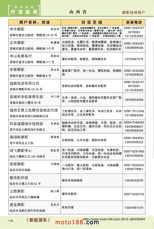 內(nèi)116 山西省摩托車配件經(jīng)銷商戶