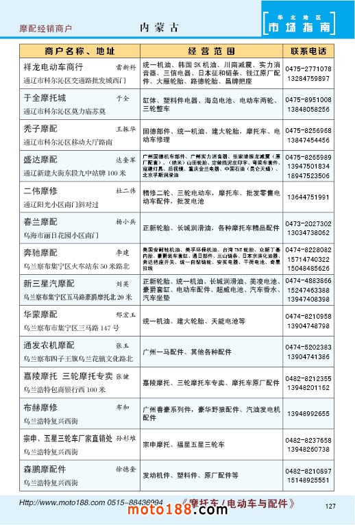 中國摩配市場從上世紀九十年代開始經(jīng)過高速度的發(fā)展,正逐步減速,摩托車行業(yè)也漸呈式微,與之緊密相關(guān)的后市場的配件與維修也呈逐步下滑之勢,取代摩托車的在發(fā)達地區(qū)是汽車,欠發(fā)達地區(qū)是電動兩輪、電動三輪,甚至電動四輪車,隨著經(jīng)濟的發(fā)展,出行的多樣化,也給了消費者多重的選擇。目前現(xiàn)有的摩托車及配件市場,也不再是以純摩托車為主體,有的市場電動車取代了摩托車,有的商店也是混合經(jīng)營,這些變化在《市場指南》里面都有所反應(yīng)。這次《北方指南》一些小市場不再單列,并入到相應(yīng)的省份中去;以前去市場的公交線路,書中也不再列入,因為現(xiàn)在的地圖導(dǎo)航功能十分強大,既新又準。