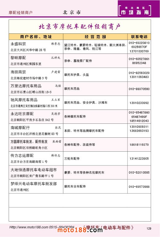 內(nèi)129 北京市摩托車配件經(jīng)銷商戶
