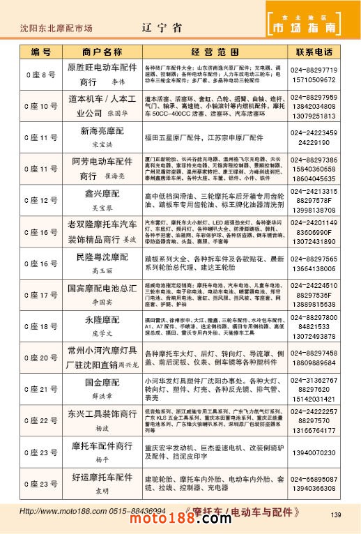 中國摩配市場從上世紀九十年代開始經(jīng)過高速度的發(fā)展,正逐步減速,摩托車行業(yè)也漸呈式微,與之緊密相關(guān)的后市場的配件與維修也呈逐步下滑之勢,取代摩托車的在發(fā)達地區(qū)是汽車,欠發(fā)達地區(qū)是電動兩輪、電動三輪,甚至電動四輪車,隨著經(jīng)濟的發(fā)展,出行的多樣化,也給了消費者多重的選擇。目前現(xiàn)有的摩托車及配件市場,也不再是以純摩托車為主體,有的市場電動車取代了摩托車,有的商店也是混合經(jīng)營,這些變化在《市場指南》里面都有所反應(yīng)。這次《北方指南》一些小市場不再單列,并入到相應(yīng)的省份中去;以前去市場的公交線路,書中也不再列入,因為現(xiàn)在的地圖導(dǎo)航功能十分強大,既新又準。