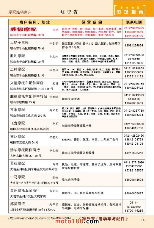 中國(guó)摩配市場(chǎng)從上世紀(jì)九十年代開始經(jīng)過(guò)高速度的發(fā)展,正逐步減速,摩托車行業(yè)也漸呈式微,與之緊密相關(guān)的后市場(chǎng)的配件與維修也呈逐步下滑之勢(shì),取代摩托車的在發(fā)達(dá)地區(qū)是汽車,欠發(fā)達(dá)地區(qū)是電動(dòng)兩輪、電動(dòng)三輪,甚至電動(dòng)四輪車,隨著經(jīng)濟(jì)的發(fā)展,出行的多樣化,也給了消費(fèi)者多重的選擇。目前現(xiàn)有的摩托車及配件市場(chǎng),也不再是以純摩托車為主體,有的市場(chǎng)電動(dòng)車取代了摩托車,有的商店也是混合經(jīng)營(yíng),這些變化在《市場(chǎng)指南》里面都有所反應(yīng)。這次《北方指南》一些小市場(chǎng)不再單列,并入到相應(yīng)的省份中去;以前去市場(chǎng)的公交線路,書中也不再列入,因?yàn)楝F(xiàn)在的地圖導(dǎo)航功能十分強(qiáng)大,既新又準(zhǔn)。