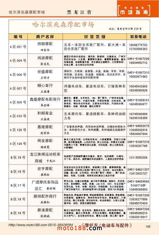 中國摩配市場從上世紀(jì)九十年代開始經(jīng)過高速度的發(fā)展,正逐步減速,摩托車行業(yè)也漸呈式微,與之緊密相關(guān)的后市場的配件與維修也呈逐步下滑之勢,取代摩托車的在發(fā)達(dá)地區(qū)是汽車,欠發(fā)達(dá)地區(qū)是電動(dòng)兩輪、電動(dòng)三輪,甚至電動(dòng)四輪車,隨著經(jīng)濟(jì)的發(fā)展,出行的多樣化,也給了消費(fèi)者多重的選擇。目前現(xiàn)有的摩托車及配件市場,也不再是以純摩托車為主體,有的市場電動(dòng)車取代了摩托車,有的商店也是混合經(jīng)營,這些變化在《市場指南》里面都有所反應(yīng)。這次《北方指南》一些小市場不再單列,并入到相應(yīng)的省份中去;以前去市場的公交線路,書中也不再列入,因?yàn)楝F(xiàn)在的地圖導(dǎo)航功能十分強(qiáng)大,既新又準(zhǔn)。