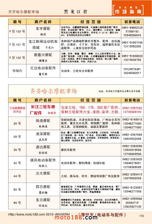 中國摩配市場從上世紀九十年代開始經(jīng)過高速度的發(fā)展,正逐步減速,摩托車行業(yè)也漸呈式微,與之緊密相關(guān)的后市場的配件與維修也呈逐步下滑之勢,取代摩托車的在發(fā)達地區(qū)是汽車,欠發(fā)達地區(qū)是電動兩輪、電動三輪,甚至電動四輪車,隨著經(jīng)濟的發(fā)展,出行的多樣化,也給了消費者多重的選擇。目前現(xiàn)有的摩托車及配件市場,也不再是以純摩托車為主體,有的市場電動車取代了摩托車,有的商店也是混合經(jīng)營,這些變化在《市場指南》里面都有所反應(yīng)。這次《北方指南》一些小市場不再單列,并入到相應(yīng)的省份中去;以前去市場的公交線路,書中也不再列入,因為現(xiàn)在的地圖導(dǎo)航功能十分強大,既新又準。