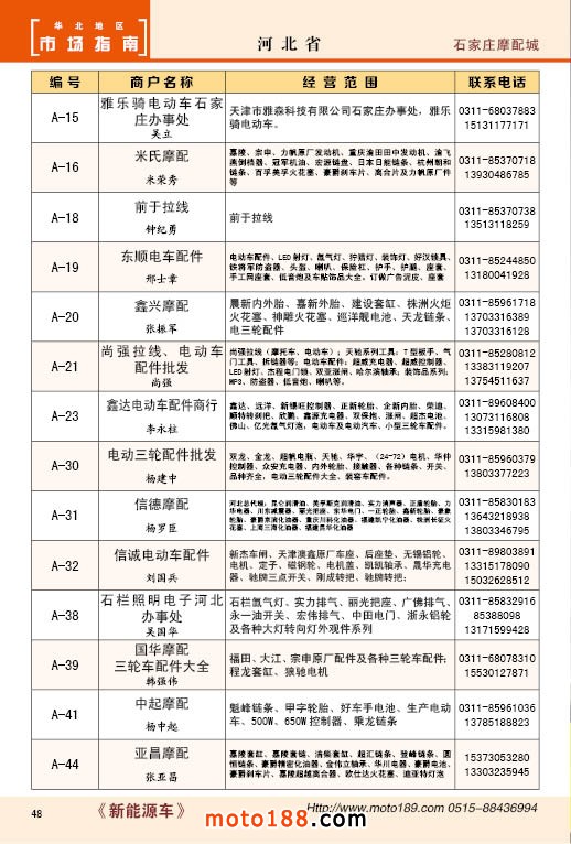 中國摩配市場從上世紀九十年代開始經(jīng)過高速度的發(fā)展,正逐步減速,摩托車行業(yè)也漸呈式微,與之緊密相關(guān)的后市場的配件與維修也呈逐步下滑之勢,取代摩托車的在發(fā)達地區(qū)是汽車,欠發(fā)達地區(qū)是電動兩輪、電動三輪,甚至電動四輪車,隨著經(jīng)濟的發(fā)展,出行的多樣化,也給了消費者多重的選擇。目前現(xiàn)有的摩托車及配件市場,也不再是以純摩托車為主體,有的市場電動車取代了摩托車,有的商店也是混合經(jīng)營,這些變化在《市場指南》里面都有所反應(yīng)。這次《北方指南》一些小市場不再單列,并入到相應(yīng)的省份中去;以前去市場的公交線路,書中也不再列入,因為現(xiàn)在的地圖導(dǎo)航功能十分強大,既新又準(zhǔn)。