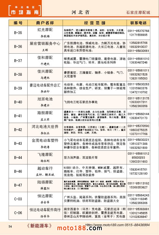 中國摩配市場從上世紀(jì)九十年代開始經(jīng)過高速度的發(fā)展,正逐步減速,摩托車行業(yè)也漸呈式微,與之緊密相關(guān)的后市場的配件與維修也呈逐步下滑之勢,取代摩托車的在發(fā)達(dá)地區(qū)是汽車,欠發(fā)達(dá)地區(qū)是電動兩輪、電動三輪,甚至電動四輪車,隨著經(jīng)濟(jì)的發(fā)展,出行的多樣化,也給了消費(fèi)者多重的選擇。目前現(xiàn)有的摩托車及配件市場,也不再是以純摩托車為主體,有的市場電動車取代了摩托車,有的商店也是混合經(jīng)營,這些變化在《市場指南》里面都有所反應(yīng)。這次《北方指南》一些小市場不再單列,并入到相應(yīng)的省份中去;以前去市場的公交線路,書中也不再列入,因為現(xiàn)在的地圖導(dǎo)航功能十分強(qiáng)大,既新又準(zhǔn)。