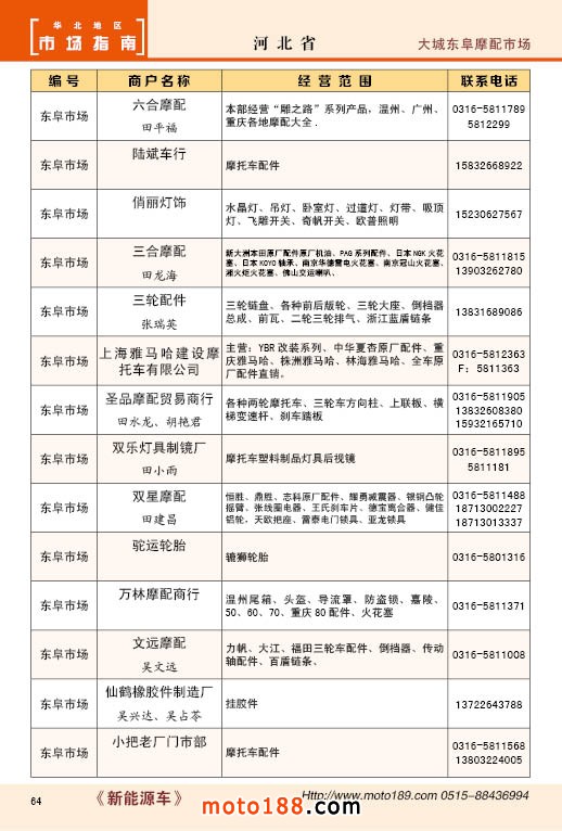 中國(guó)摩配市場(chǎng)從上世紀(jì)九十年代開(kāi)始經(jīng)過(guò)高速度的發(fā)展,正逐步減速,摩托車行業(yè)也漸呈式微,與之緊密相關(guān)的后市場(chǎng)的配件與維修也呈逐步下滑之勢(shì),取代摩托車的在發(fā)達(dá)地區(qū)是汽車,欠發(fā)達(dá)地區(qū)是電動(dòng)兩輪、電動(dòng)三輪,甚至電動(dòng)四輪車,隨著經(jīng)濟(jì)的發(fā)展,出行的多樣化,也給了消費(fèi)者多重的選擇。目前現(xiàn)有的摩托車及配件市場(chǎng),也不再是以純摩托車為主體,有的市場(chǎng)電動(dòng)車取代了摩托車,有的商店也是混合經(jīng)營(yíng),這些變化在《市場(chǎng)指南》里面都有所反應(yīng)。這次《北方指南》一些小市場(chǎng)不再單列,并入到相應(yīng)的省份中去;以前去市場(chǎng)的公交線路,書(shū)中也不再列入,因?yàn)楝F(xiàn)在的地圖導(dǎo)航功能十分強(qiáng)大,既新又準(zhǔn)。