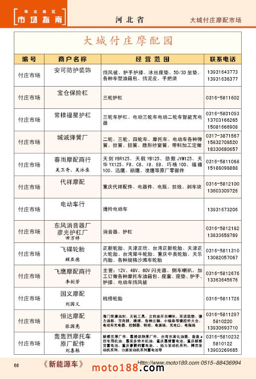 中國摩配市場從上世紀九十年代開始經(jīng)過高速度的發(fā)展,正逐步減速,摩托車行業(yè)也漸呈式微,與之緊密相關(guān)的后市場的配件與維修也呈逐步下滑之勢,取代摩托車的在發(fā)達地區(qū)是汽車,欠發(fā)達地區(qū)是電動兩輪、電動三輪,甚至電動四輪車,隨著經(jīng)濟的發(fā)展,出行的多樣化,也給了消費者多重的選擇。目前現(xiàn)有的摩托車及配件市場,也不再是以純摩托車為主體,有的市場電動車取代了摩托車,有的商店也是混合經(jīng)營,這些變化在《市場指南》里面都有所反應。這次《北方指南》一些小市場不再單列,并入到相應的省份中去;以前去市場的公交線路,書中也不再列入,因為現(xiàn)在的地圖導航功能十分強大,既新又準。