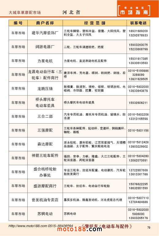 中國摩配市場從上世紀九十年代開始經(jīng)過高速度的發(fā)展,正逐步減速,摩托車行業(yè)也漸呈式微,與之緊密相關(guān)的后市場的配件與維修也呈逐步下滑之勢,取代摩托車的在發(fā)達地區(qū)是汽車,欠發(fā)達地區(qū)是電動兩輪、電動三輪,甚至電動四輪車,隨著經(jīng)濟的發(fā)展,出行的多樣化,也給了消費者多重的選擇。目前現(xiàn)有的摩托車及配件市場,也不再是以純摩托車為主體,有的市場電動車取代了摩托車,有的商店也是混合經(jīng)營,這些變化在《市場指南》里面都有所反應(yīng)。這次《北方指南》一些小市場不再單列,并入到相應(yīng)的省份中去;以前去市場的公交線路,書中也不再列入,因為現(xiàn)在的地圖導航功能十分強大,既新又準。