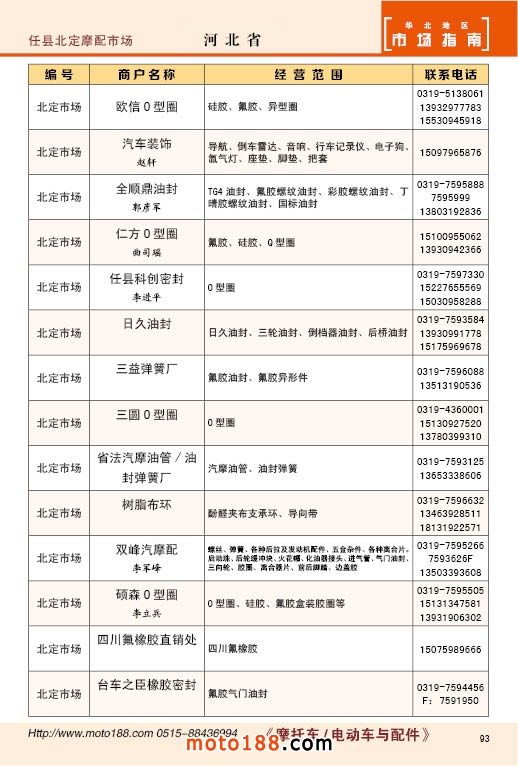 中國摩配市場從上世紀(jì)九十年代開始經(jīng)過高速度的發(fā)展,正逐步減速,摩托車行業(yè)也漸呈式微,與之緊密相關(guān)的后市場的配件與維修也呈逐步下滑之勢,取代摩托車的在發(fā)達地區(qū)是汽車,欠發(fā)達地區(qū)是電動兩輪、電動三輪,甚至電動四輪車,隨著經(jīng)濟的發(fā)展,出行的多樣化,也給了消費者多重的選擇。目前現(xiàn)有的摩托車及配件市場,也不再是以純摩托車為主體,有的市場電動車取代了摩托車,有的商店也是混合經(jīng)營,這些變化在《市場指南》里面都有所反應(yīng)。這次《北方指南》一些小市場不再單列,并入到相應(yīng)的省份中去;以前去市場的公交線路,書中也不再列入,因為現(xiàn)在的地圖導(dǎo)航功能十分強大,既新又準(zhǔn)。