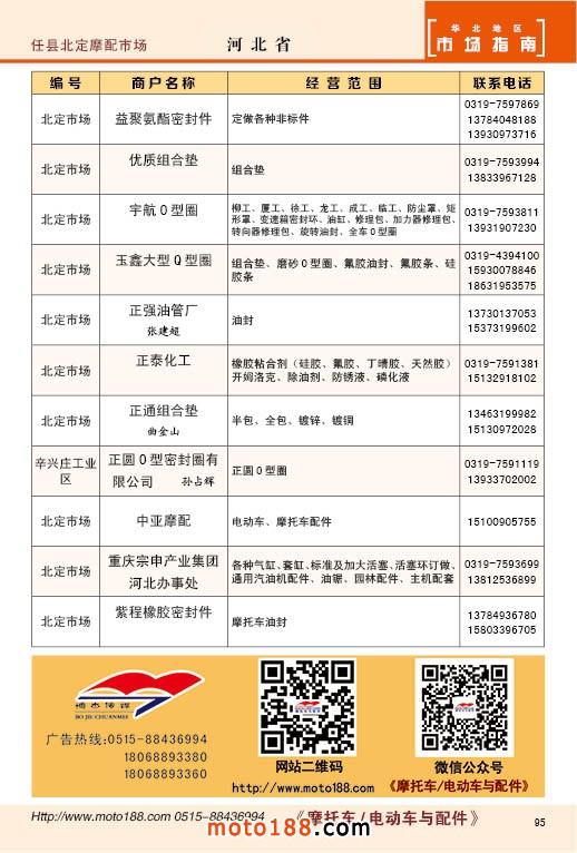 中國(guó)摩配市場(chǎng)從上世紀(jì)九十年代開(kāi)始經(jīng)過(guò)高速度的發(fā)展,正逐步減速,摩托車(chē)行業(yè)也漸呈式微,與之緊密相關(guān)的后市場(chǎng)的配件與維修也呈逐步下滑之勢(shì),取代摩托車(chē)的在發(fā)達(dá)地區(qū)是汽車(chē),欠發(fā)達(dá)地區(qū)是電動(dòng)兩輪、電動(dòng)三輪,甚至電動(dòng)四輪車(chē),隨著經(jīng)濟(jì)的發(fā)展,出行的多樣化,也給了消費(fèi)者多重的選擇。目前現(xiàn)有的摩托車(chē)及配件市場(chǎng),也不再是以純摩托車(chē)為主體,有的市場(chǎng)電動(dòng)車(chē)取代了摩托車(chē),有的商店也是混合經(jīng)營(yíng),這些變化在《市場(chǎng)指南》里面都有所反應(yīng)。這次《北方指南》一些小市場(chǎng)不再單列,并入到相應(yīng)的省份中去;以前去市場(chǎng)的公交線路,書(shū)中也不再列入,因?yàn)楝F(xiàn)在的地圖導(dǎo)航功能十分強(qiáng)大,既新又準(zhǔn)。