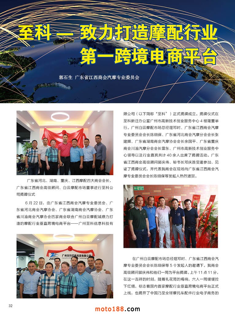 從下半年開始,開設外貿(mào)專題。今年內(nèi)銷市場疲軟,然而廣州幾大市場在外貿(mào)出口業(yè)務上,除了價格下滑之外,出口量并沒有明顯的下降,廣州羅沖圍一帶市場以白云市場為龍頭,一批年輕經(jīng)銷商們朝氣蓬勃的活躍在外貿(mào)市場上,他們更注重品牌化,拒絕假冒;他們立足于傳統(tǒng)行業(yè),又運用互聯(lián)網(wǎng)技術,將摩托車配件貿(mào)易逐步向電子商務化進軍;為了拓展國外市場,他們摒棄門戶之見,抱團出海,除了組織地方商會,又將地方商會聯(lián)合起來,組成對外貿(mào)易的航母;他們使出各種解數(shù),一時間風生水起,給行業(yè)帶來了勃勃生機,他們立足于當下,卻志在未來,正逐步引領行業(yè)向新的目標前進,為此我們做了一個專題的報道《長風破浪會有時,直掛云帆濟滄?!?,由于這期雜志時間緊迫,以及版面的限制,請見下一期雜志。本期雜志用了四頁紙報道了這樣一個新成立的團隊,他們?yōu)樾袠I(yè)帶來變革,帶入新的氣象。正是因為我們有一代具有國際化視野的摩配商人,也是我們行業(yè)希望所在,未來所在。