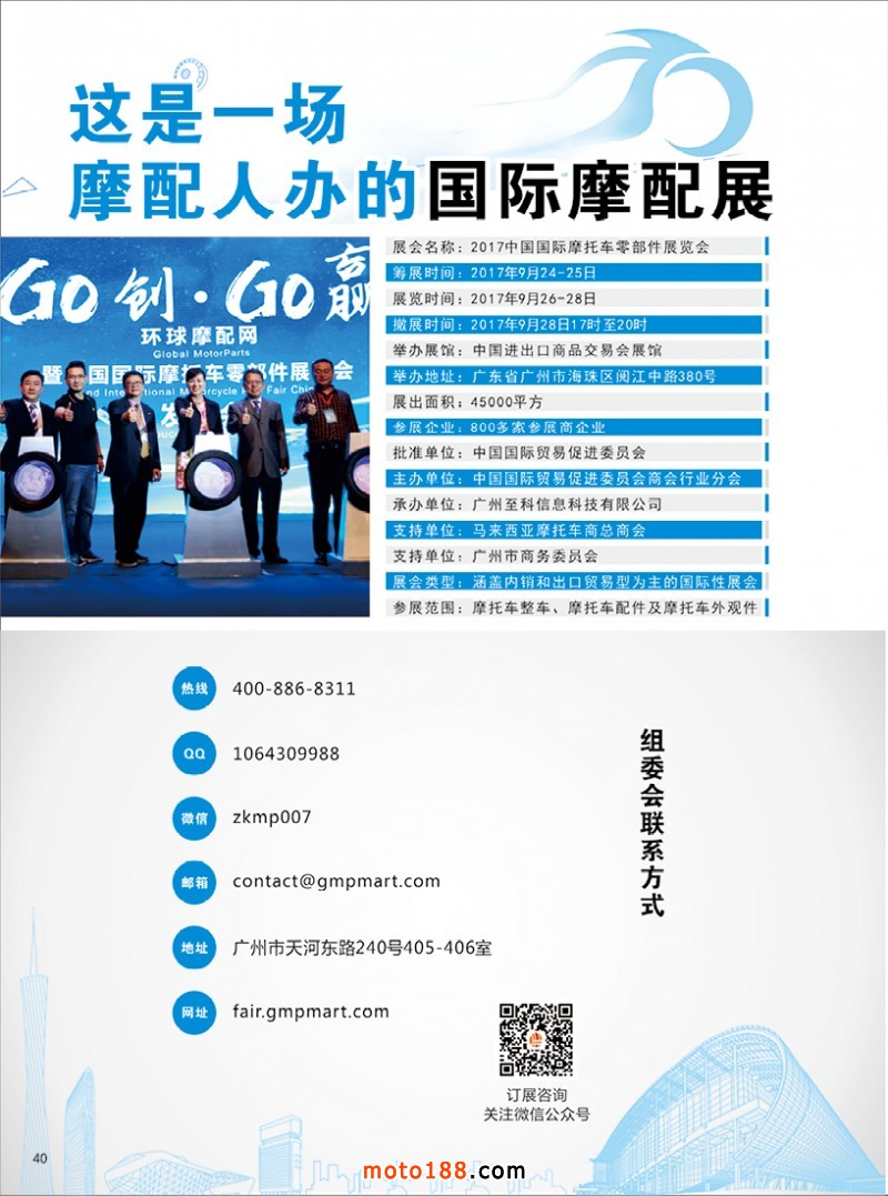 今年第73屆全國摩托車及配件展示交易會(huì)將在昆明召開,目前我們正在為會(huì)議進(jìn)行緊張的忙碌中。今年在會(huì)議上我們提供的資料是《西南地區(qū)市場指南》《會(huì)刊》《摩托車與配件》第五期雜志,歡迎大家到6130展位來領(lǐng)取。
