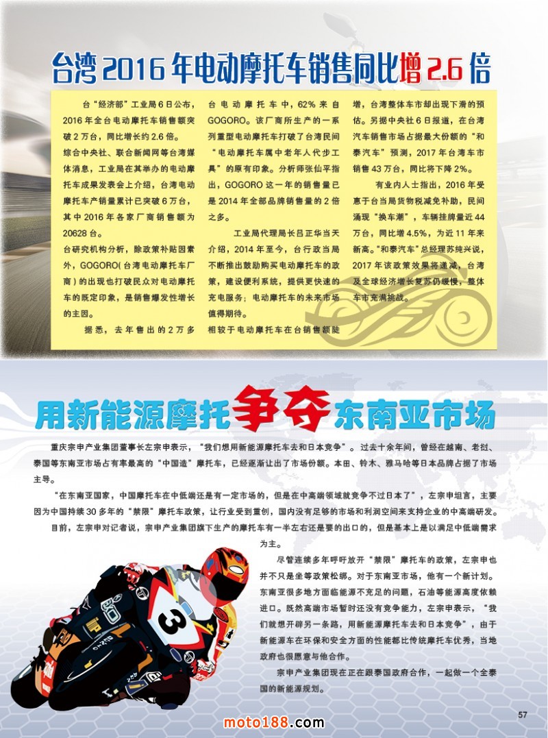 內(nèi)57 臺(tái)灣2016年電動(dòng)摩托車銷售同比增2.6倍