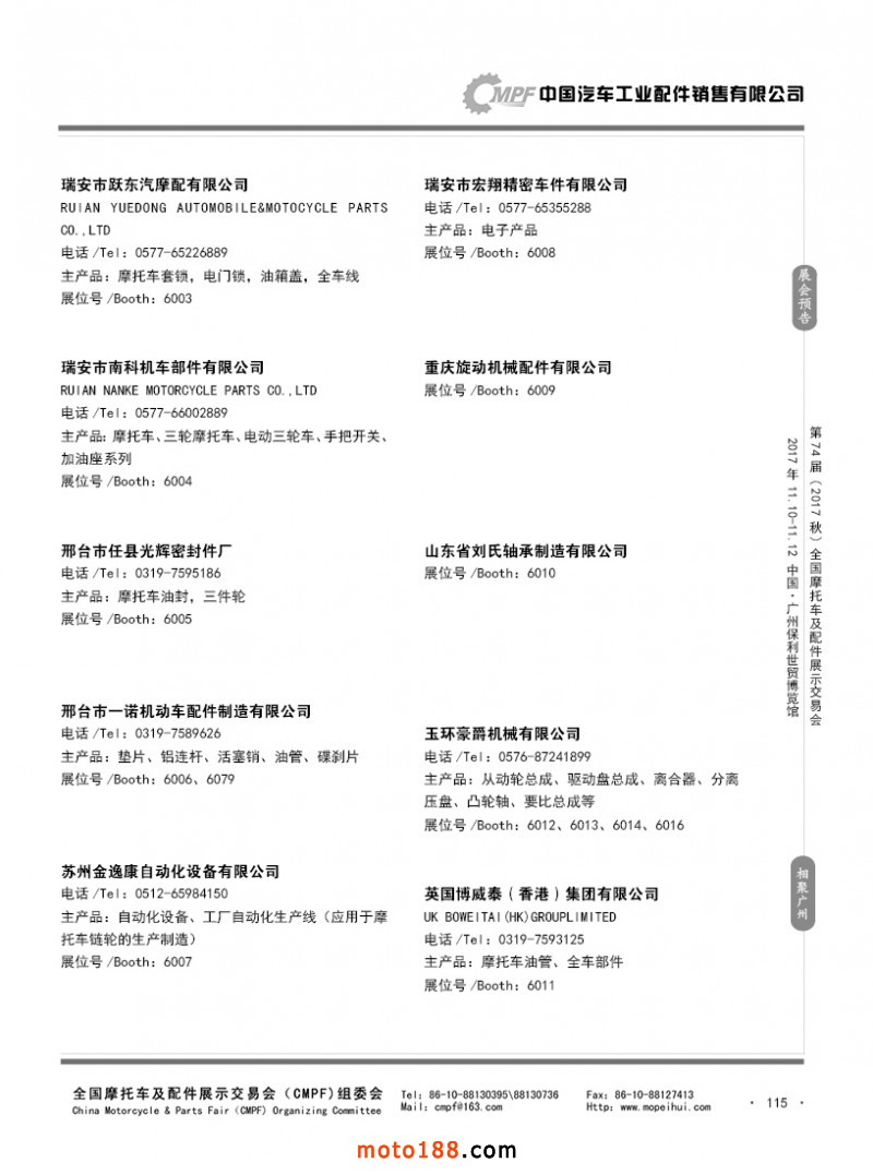 內(nèi)115 參展企業(yè)名錄