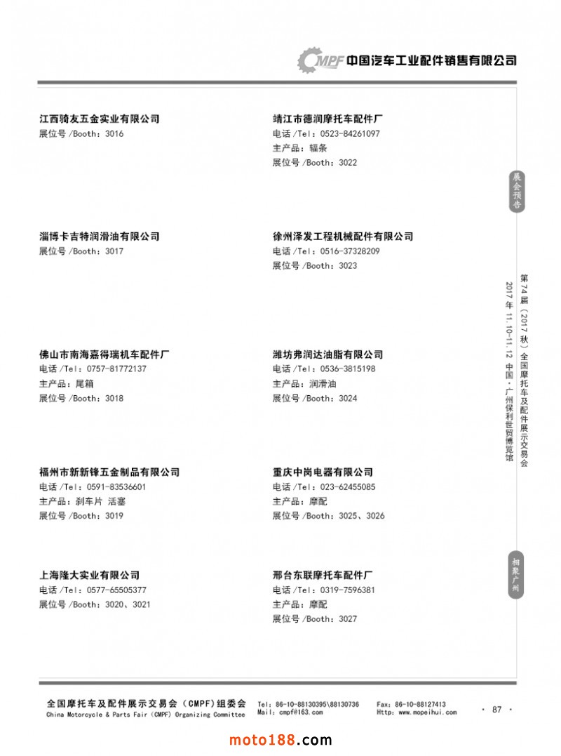 內(nèi)87 參展企業(yè)名錄