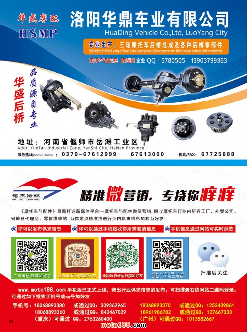 2017.6月《摩托車/電動(dòng)車與配件》雜志,歡迎大家閱讀日期:2017-06-02 點(diǎn)擊:1291 查看原圖 全部展開![]() ![]() ![]() 內(nèi)84 洛陽(yáng)華鼎車業(yè)有限公司