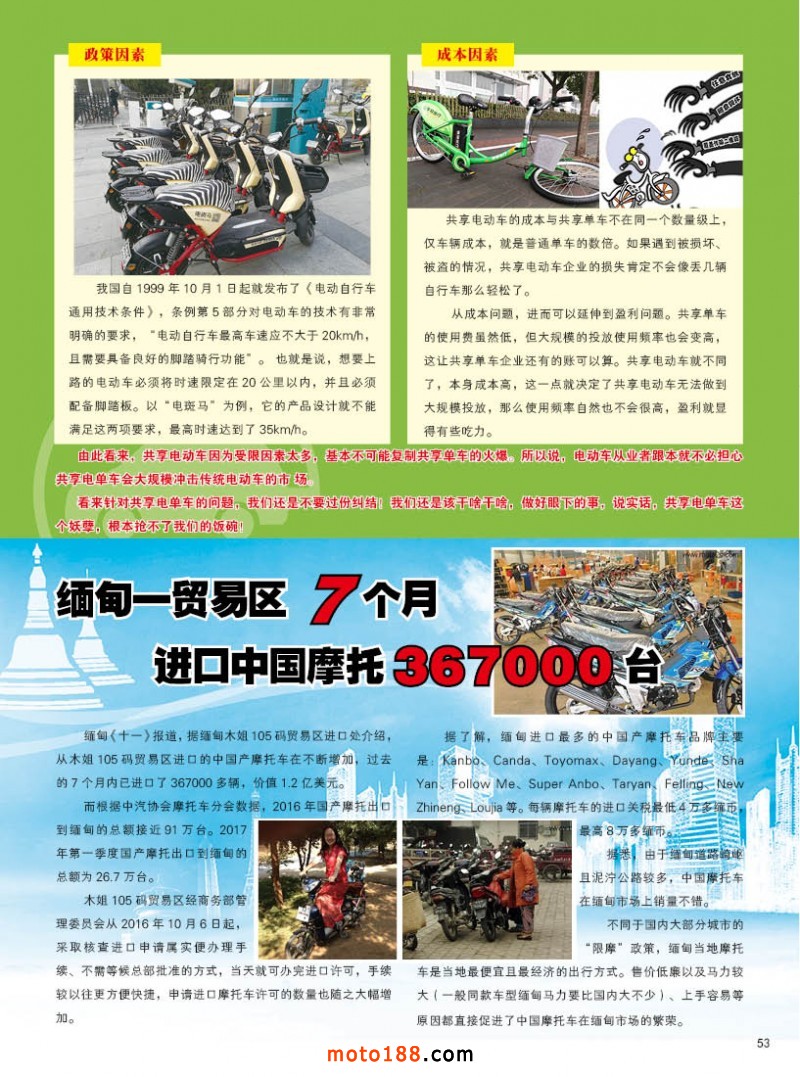內(nèi)53 緬甸一貿(mào)易區(qū)7個月進口中國摩托367000臺 |