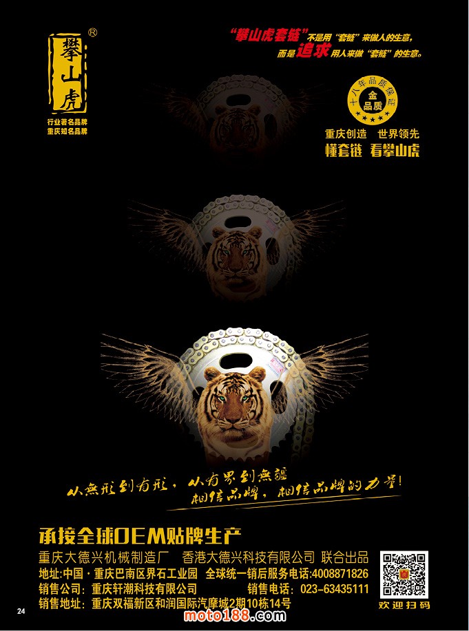 2017.8月《摩托車/電動(dòng)車與配件》雜志,歡迎大家閱讀日期:2017-07-31 點(diǎn)擊:2374 查看原圖 全部展開![]() ![]() ![]() 內(nèi)24 重慶大德興機(jī)械制造廠