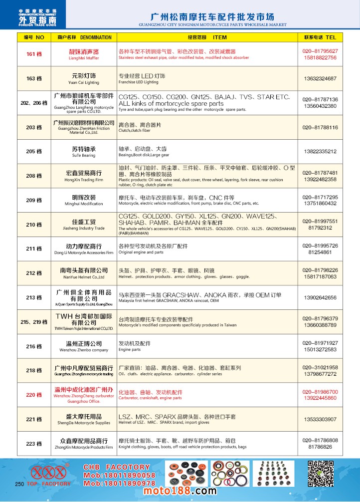 由《摩托車與配件》雜志社,在國內(nèi)首次獨(dú)家推出的《中國摩托車配件外貿(mào)市場(chǎng)指南》工具書正式面世。這是一本專業(yè)定位于外貿(mào)企業(yè)的工具書,隨著一帶一路發(fā)展戰(zhàn)略的推進(jìn),更多企業(yè)走出國門,將產(chǎn)品銷往世界各地,本書收集了國內(nèi)主要從事摩托車配件外貿(mào)的工廠、商家、國外部分駐華采購機(jī)構(gòu)等資料匯總而成.