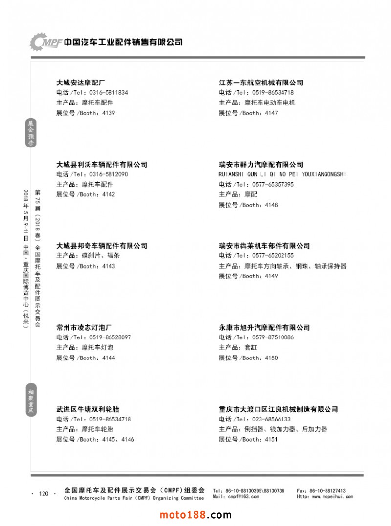 內(nèi)120 第74屆(2017秋)全國摩托車及配件展示交易會(huì)-廣州站參展企業(yè)名錄