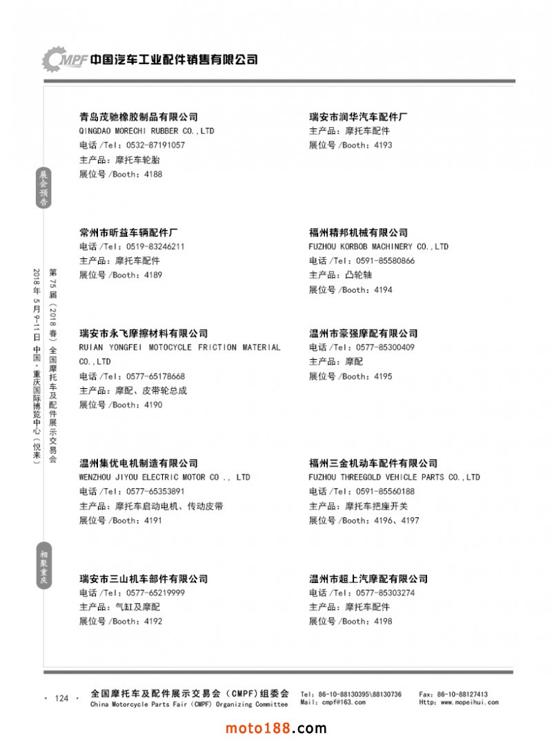 內(nèi)124 第74屆(2017秋)全國摩托車及配件展示交易會(huì)-廣州站參展企業(yè)名錄