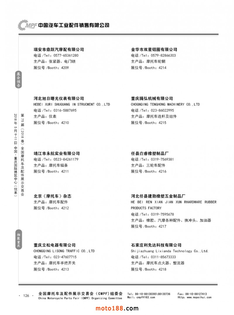 內(nèi)126 第74屆(2017秋)全國摩托車及配件展示交易會-廣州站參展企業(yè)名錄