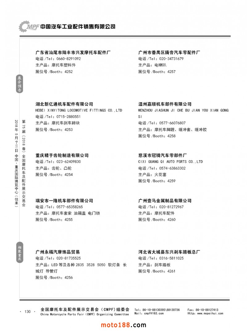 內(nèi)130 第74屆(2017秋)全國(guó)摩托車及配件展示交易會(huì)-廣州站參展企業(yè)名錄