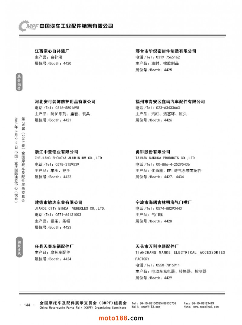 內(nèi)144 第74屆(2017秋)全國摩托車及配件展示交易會-廣州站參展企業(yè)名錄