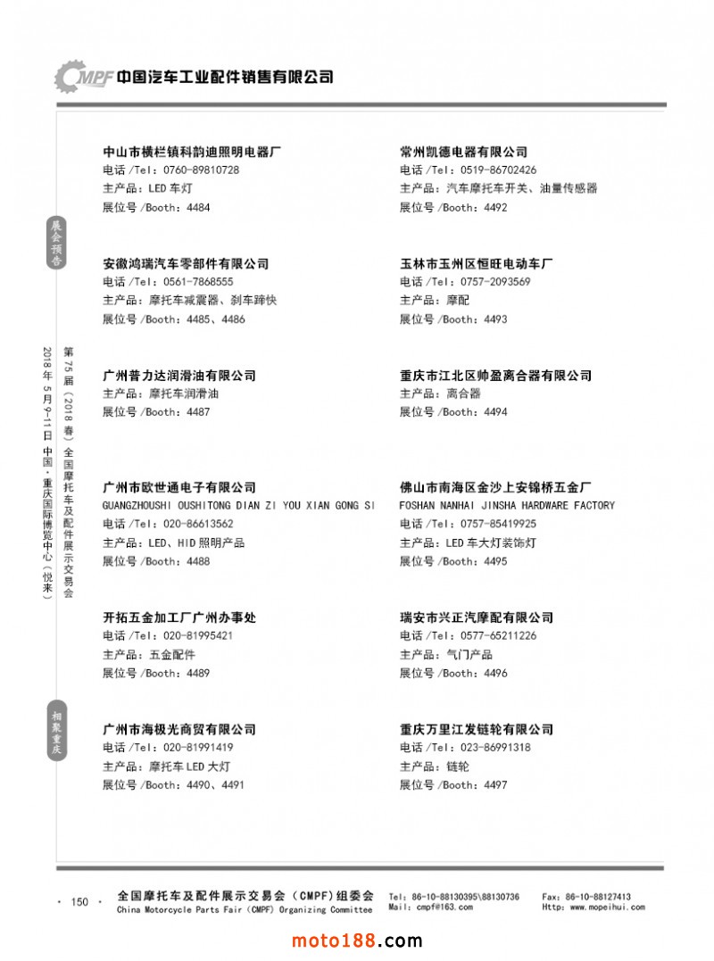 內150 第74屆(2017秋)全國摩托車及配件展示交易會-廣州站參展企業(yè)名錄