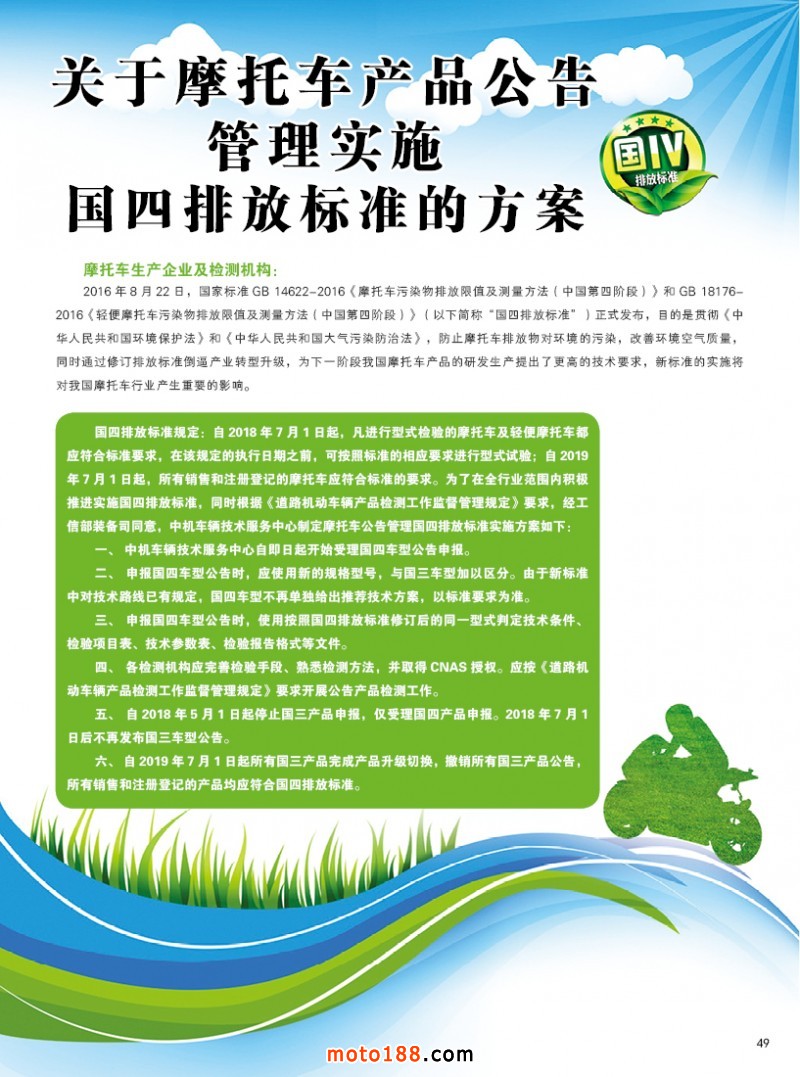 內(nèi)49 關(guān)于摩托車(chē)產(chǎn)品公告管理實(shí)施國(guó)四排放標(biāo)準(zhǔn)的方案