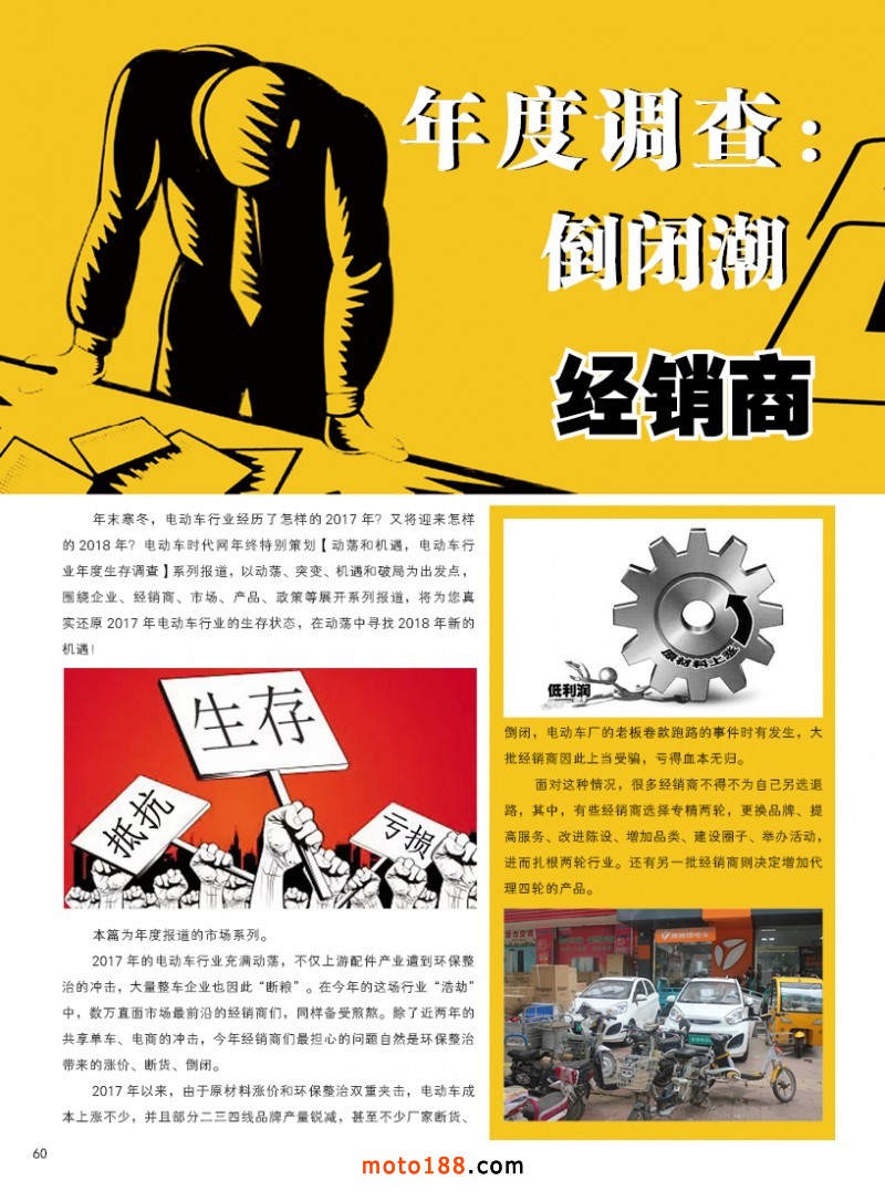 2018.3月《摩托車/電動車與配件》雜志,歡迎大家閱讀日期:2018-03-06 點(diǎn)擊:1295 查看原圖 全部展開![]() ![]() ![]() 內(nèi)60 年度調(diào)查:逃離兩輪?倒閉潮之下,經(jīng)銷商該如何生存?