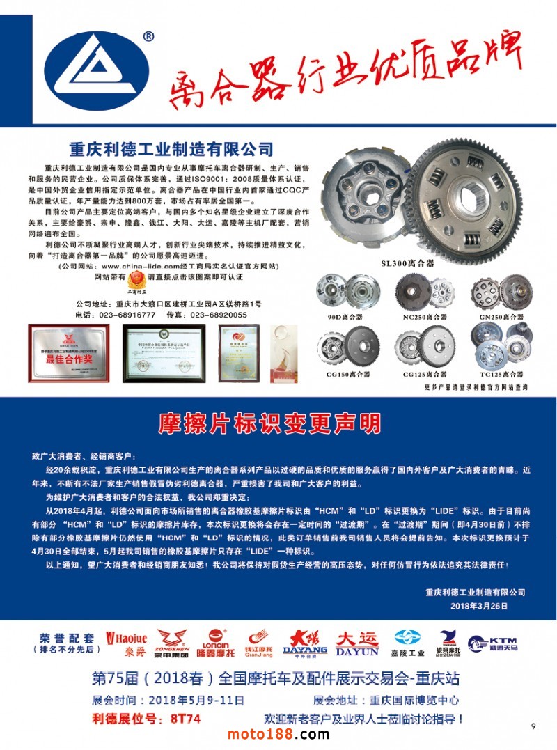 本期雜志將參加中汽的江門會(huì)展,并在大會(huì)上發(fā)放;我們的5月期雜志和全摩會(huì)會(huì)刊將在重慶春季全摩會(huì)上發(fā)行。目前廣告業(yè)務(wù)進(jìn)展順利,需要做宣傳的企業(yè)請(qǐng)速與我們聯(lián)絡(luò)。