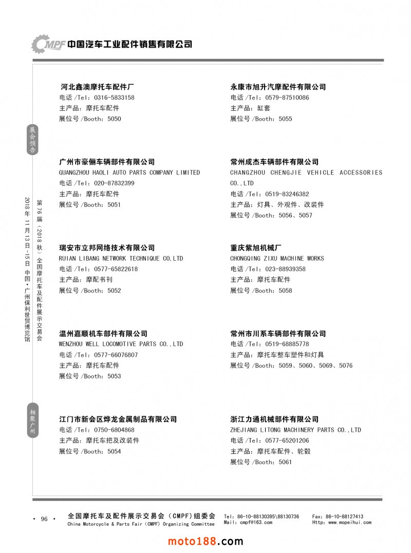 內(nèi)96 第75屆(2018春)全國摩托車及配件展示交易會-重慶站參展企業(yè)信息