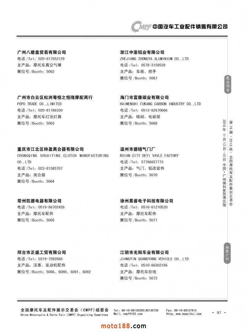 內(nèi)97 第75屆(2018春)全國摩托車及配件展示交易會-重慶站參展企業(yè)信息