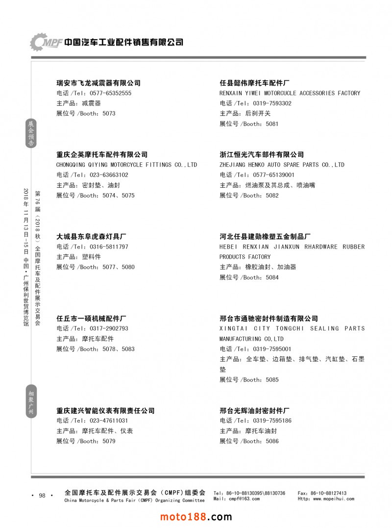 內(nèi)98 第75屆(2018春)全國(guó)摩托車(chē)及配件展示交易會(huì)-重慶站參展企業(yè)信息