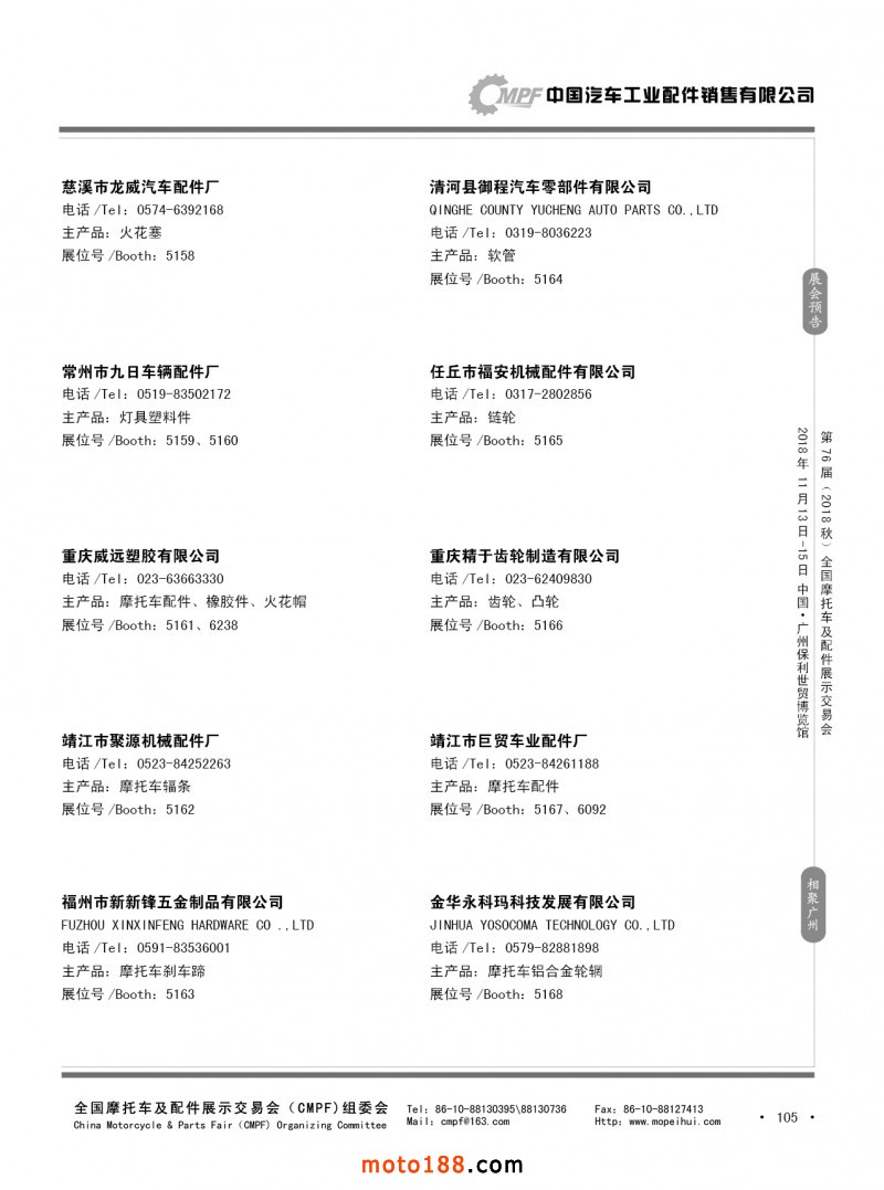 內(nèi)105 第75屆(2018春)全國(guó)摩托車及配件展示交易會(huì)-重慶站參展企業(yè)信息