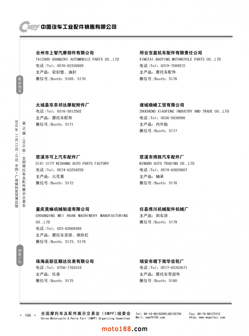 內(nèi)106 第75屆(2018春)全國摩托車及配件展示交易會-重慶站參展企業(yè)信息