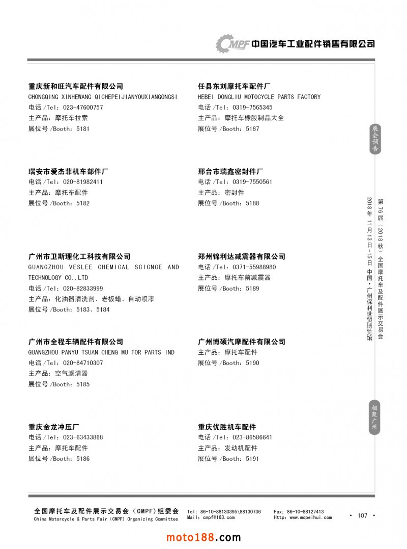 內(nèi)107 第75屆(2018春)全國摩托車及配件展示交易會-重慶站參展企業(yè)信息