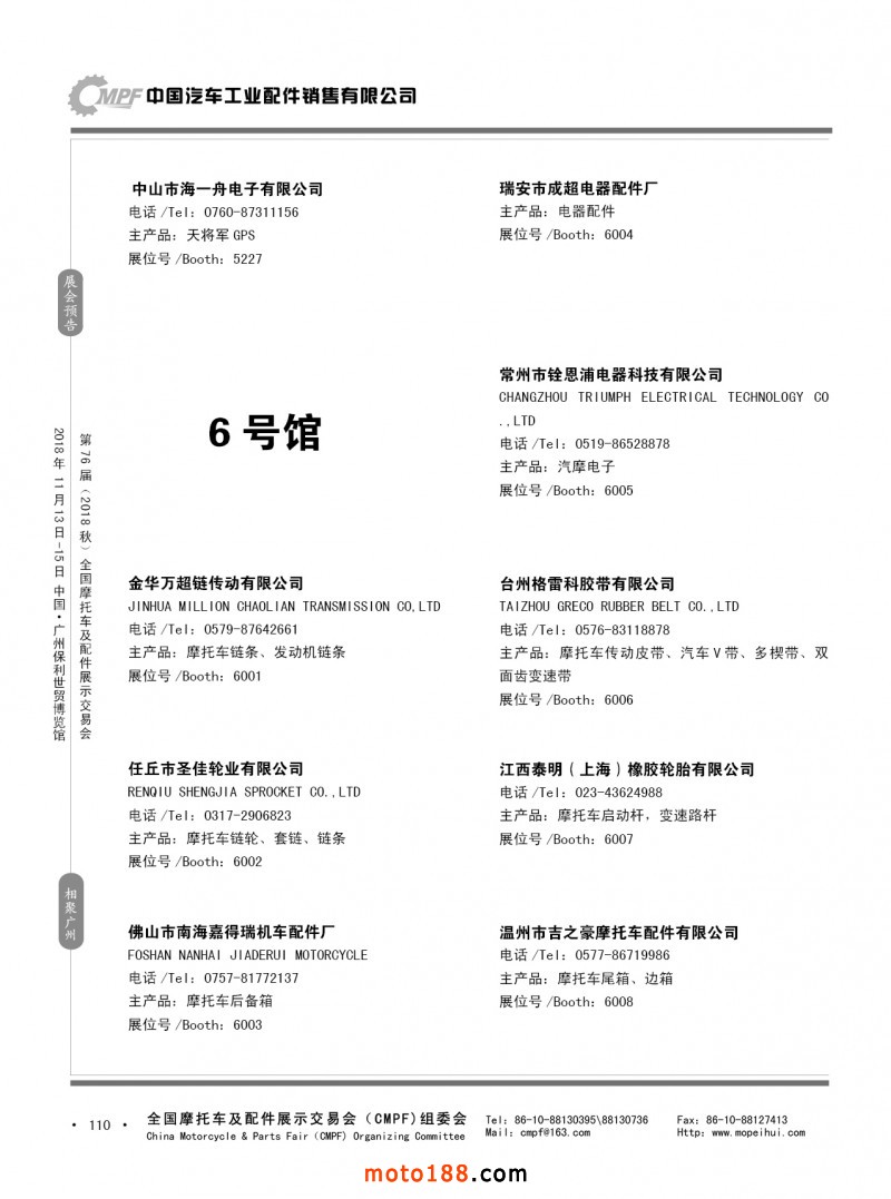 內(nèi)110 第75屆(2018春)全國摩托車及配件展示交易會-重慶站參展企業(yè)信息