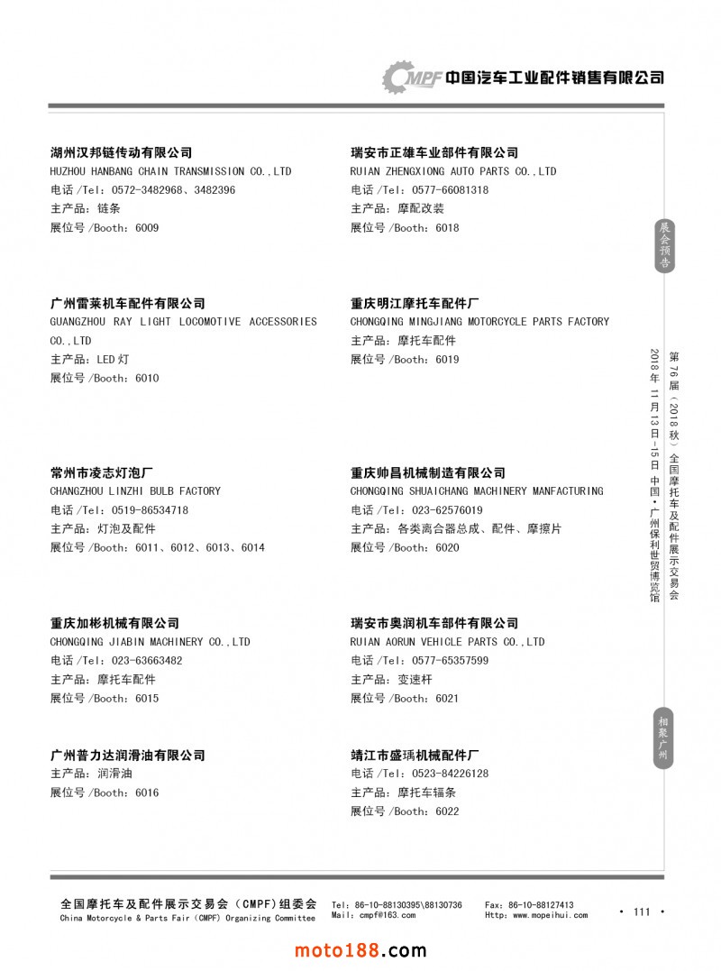 內(nèi)111 第75屆(2018春)全國(guó)摩托車及配件展示交易會(huì)-重慶站參展企業(yè)信息