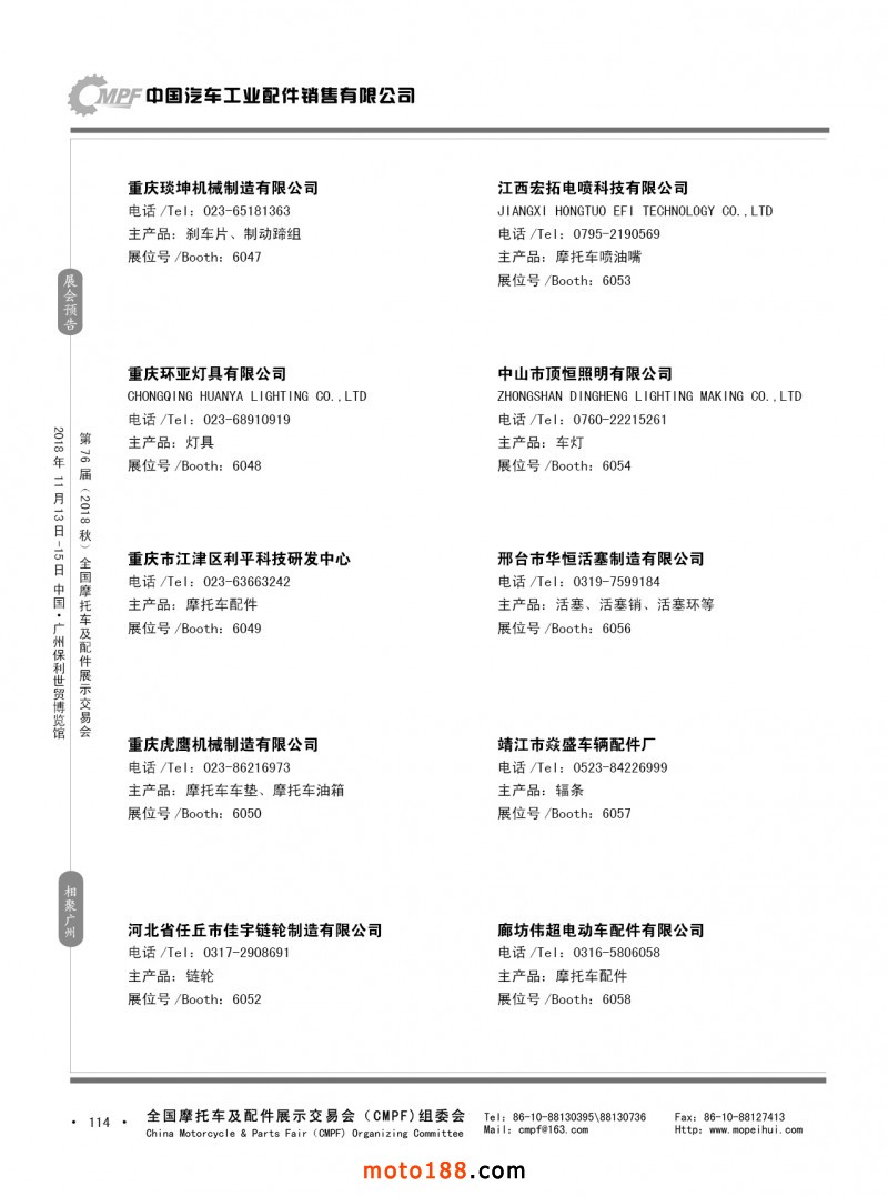 內(nèi)114 第75屆(2018春)全國摩托車及配件展示交易會(huì)-重慶站參展企業(yè)信息