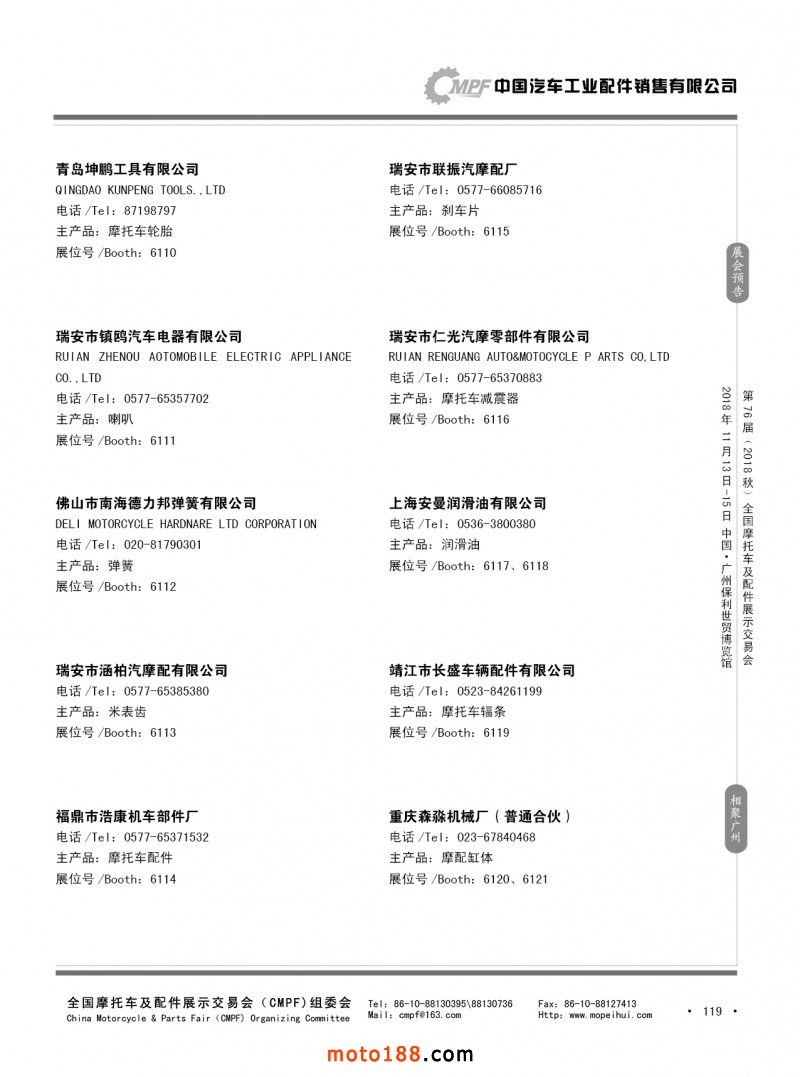 內(nèi)119 第75屆(2018春)全國摩托車及配件展示交易會-重慶站參展企業(yè)信息