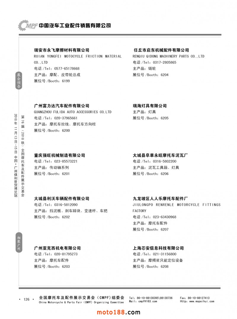 內(nèi)126 第75屆(2018春)全國摩托車及配件展示交易會-重慶站參展企業(yè)信息