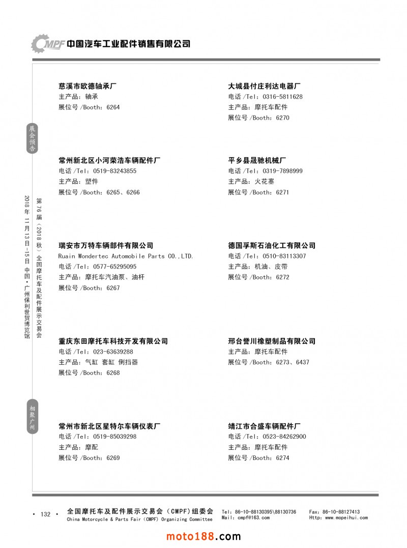 內(nèi)132 第75屆(2018春)全國摩托車及配件展示交易會(huì)-重慶站參展企業(yè)信息