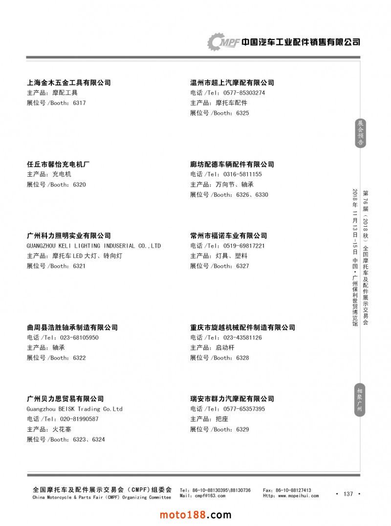 內137 第75屆(2018春)全國摩托車及配件展示交易會-重慶站參展企業(yè)信息