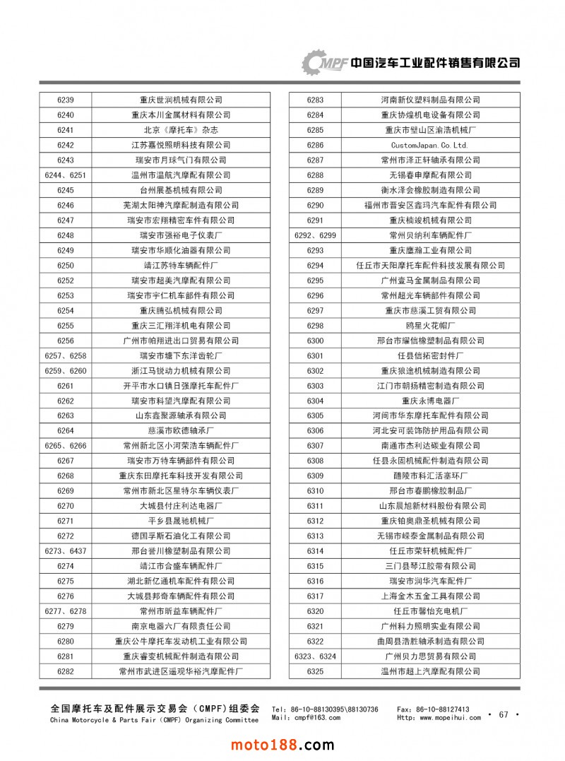 內(nèi)67 第75屆(2018春)全國摩托車及配件展示交易會(huì)-重慶站參展單位名錄