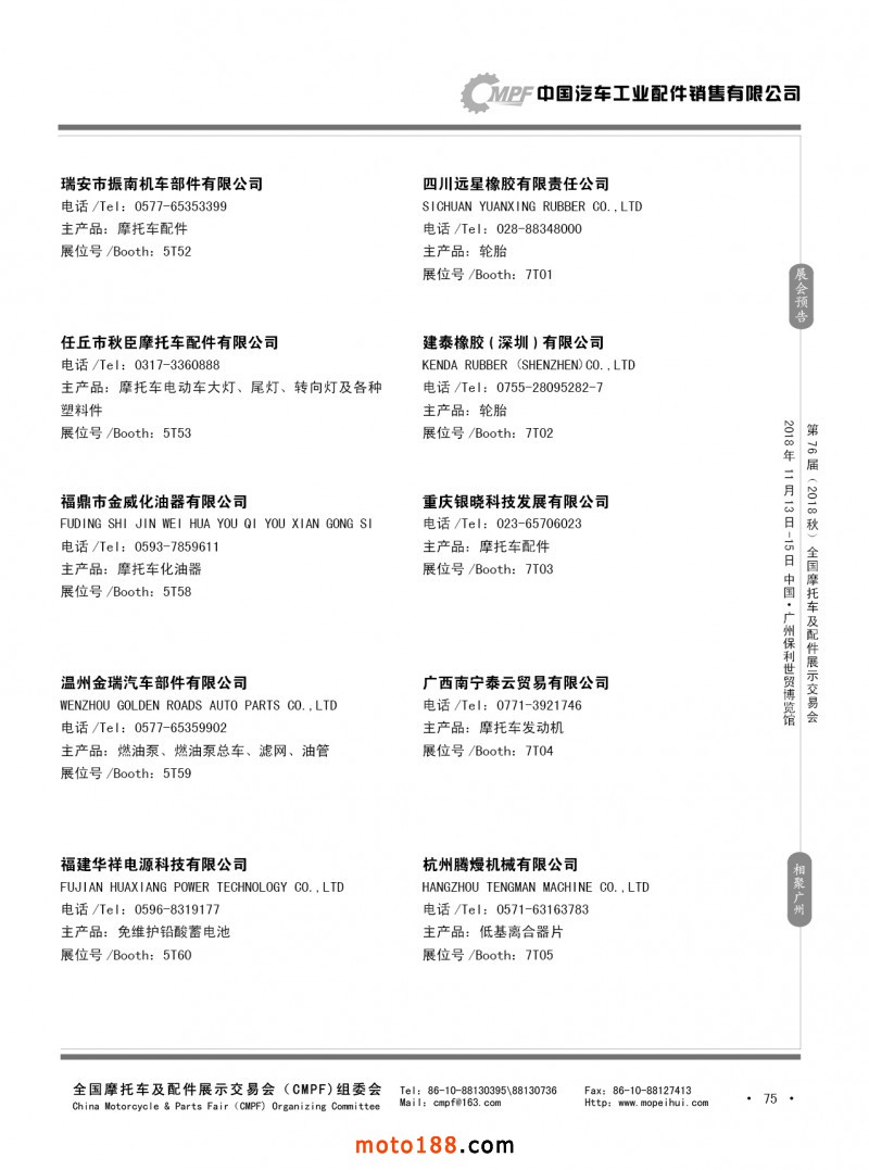 內(nèi)75 第75屆(2018春)全國(guó)摩托車及配件展示交易會(huì)-重慶站參展企業(yè)信息