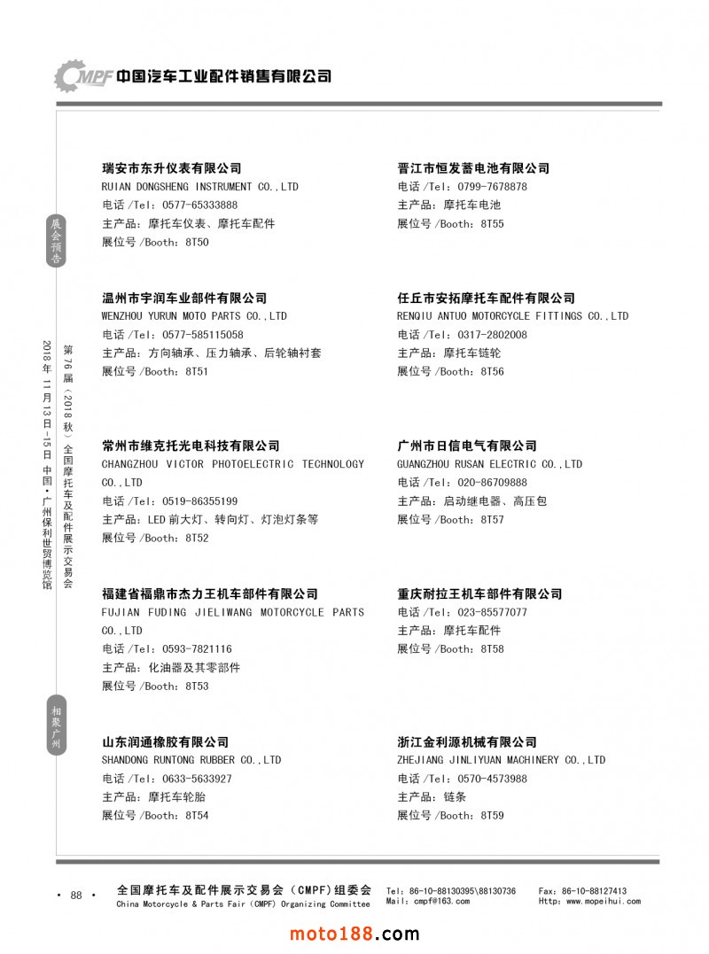 內(nèi)88 第75屆(2018春)全國摩托車及配件展示交易會-重慶站參展企業(yè)信息