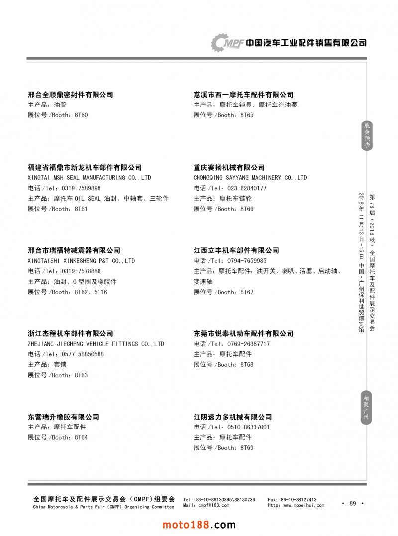 內(nèi)89 第75屆(2018春)全國摩托車及配件展示交易會-重慶站參展企業(yè)信息