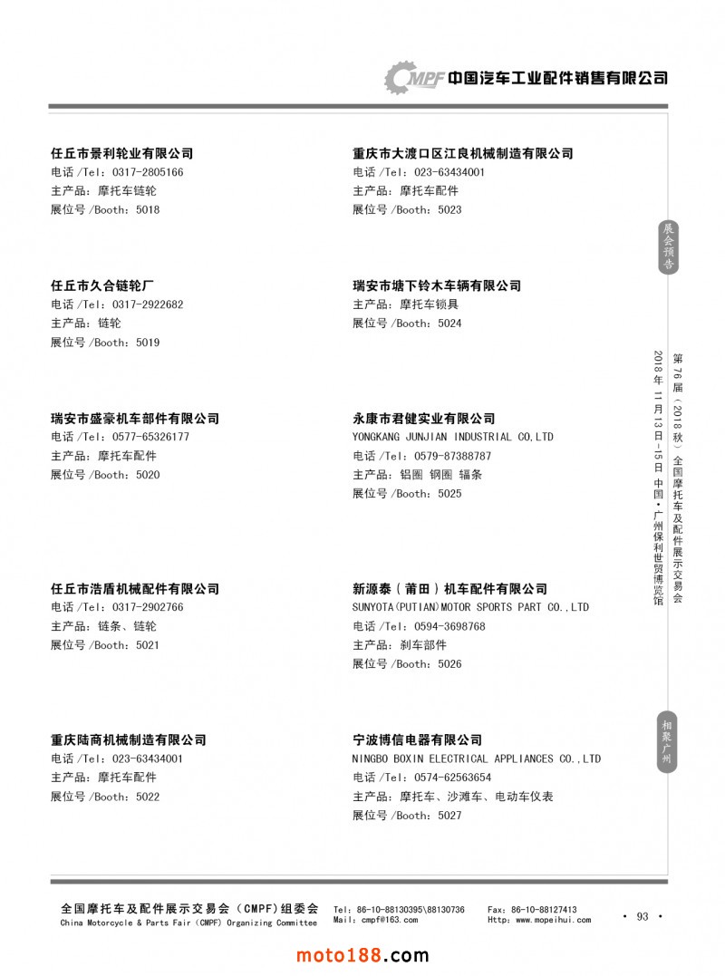 內(nèi)93 第75屆(2018春)全國(guó)摩托車(chē)及配件展示交易會(huì)-重慶站參展企業(yè)信息